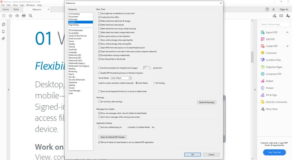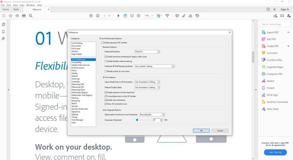Puede modificar la configuración para personalizar su herramienta como desee. Haga clic en Preferencias y personalice Comentarios, 3D y multimedia, Medición y lectura, Ortografía,Configuración de unidad de página, etc. Además, CreatePDFtambién está disponible para convertir sus archivos favoritos al formato PDF.